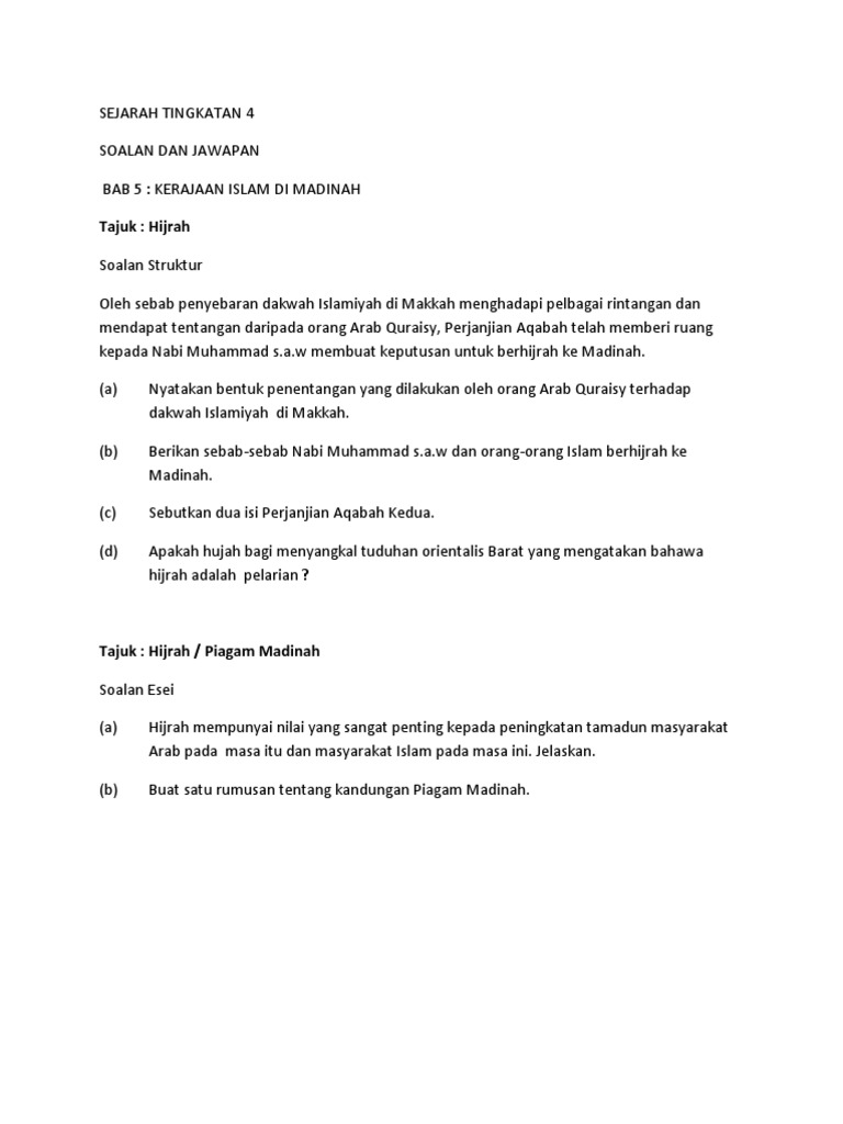 Soalan Esei Sejarah Tingkatan 4 Bab 5 Hijrah 2022-03-06T200700-0800 Rating. Tiga golongan pendudukannya Nasrani Yahudi dan Arab. Modul Lengkap Sejarah Tingkatan 4.
